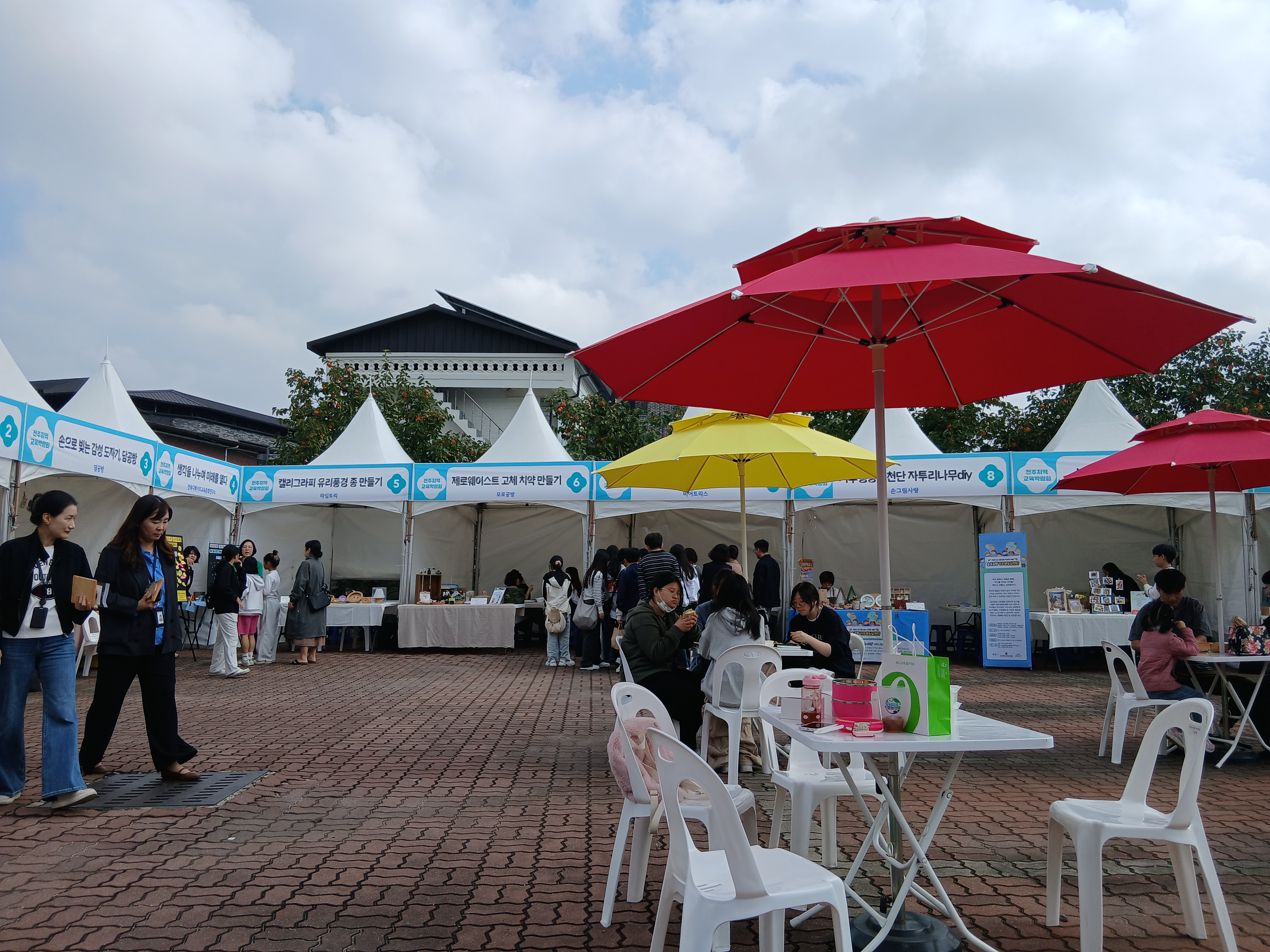 다음으로 전주교육통합지원센터가 주관한 전주교육지원청 뜰에 마련된 40여개의 체험 전시 부스를 방문하였다. (* 전주교육통합지원센터는 지역-학교-시민사회-아동.청소년이 함께 전주 교육을 논의하고 공유하는 협력 기반 중간 지원 조직이다.) 많은 학부모, 아이들이 체험부스에서 체험 활동을 하고 있었다. 40여 곳의 부스는 마을 연계 교육과정을 운영하는 참여 기관과 교육공동체가 마련하였다고 한다. 전주의 교육생태계가 살아나고 마을교육공동체가 성장하고 있음을 느낄 수 있어 마음 따뜻한 시간이었다.