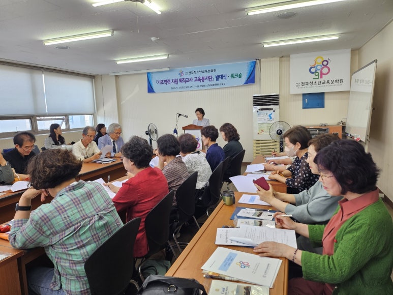 사단법인 전북청소년교육문화원(이사장 정우식)은 2024년 5월 21일(화) 오후 3시, 40여명의 봉사단원이 참석한 가운데 전북청소년교육문화원 교육실에서 ‘《기초학력 지원 퇴직교사 교육봉사단》 발대식과 워크숍’을 개최하였다.
