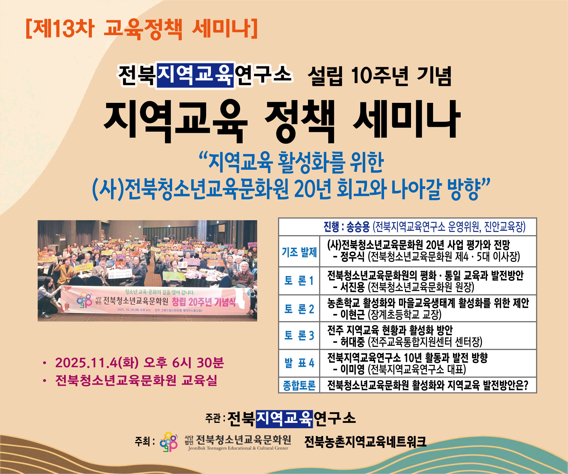 전북지역교육연구소 설립 10주년 기념 지역교육 정책 세미나