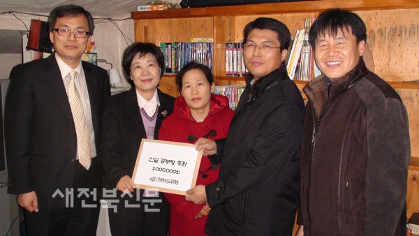 전북청소년교육문화원(이사장 이미영)이 16일 낡은 주택가에서 동네 아이들을 위해 무료 공부방을 운영하고 있는 전주시 교동 조승훈(47)씨 부부를 찾아 성금 200만원을 전달했다.